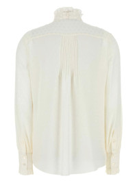 ruffled-neck silk shirt Highlights - Off-white - Ruffled neck - Bow tie - Pleated back - Long sleeves - Ruffled cuffs Made in Italy Composition Silk 100% Washing instructions Read Manufacturer Guidelines