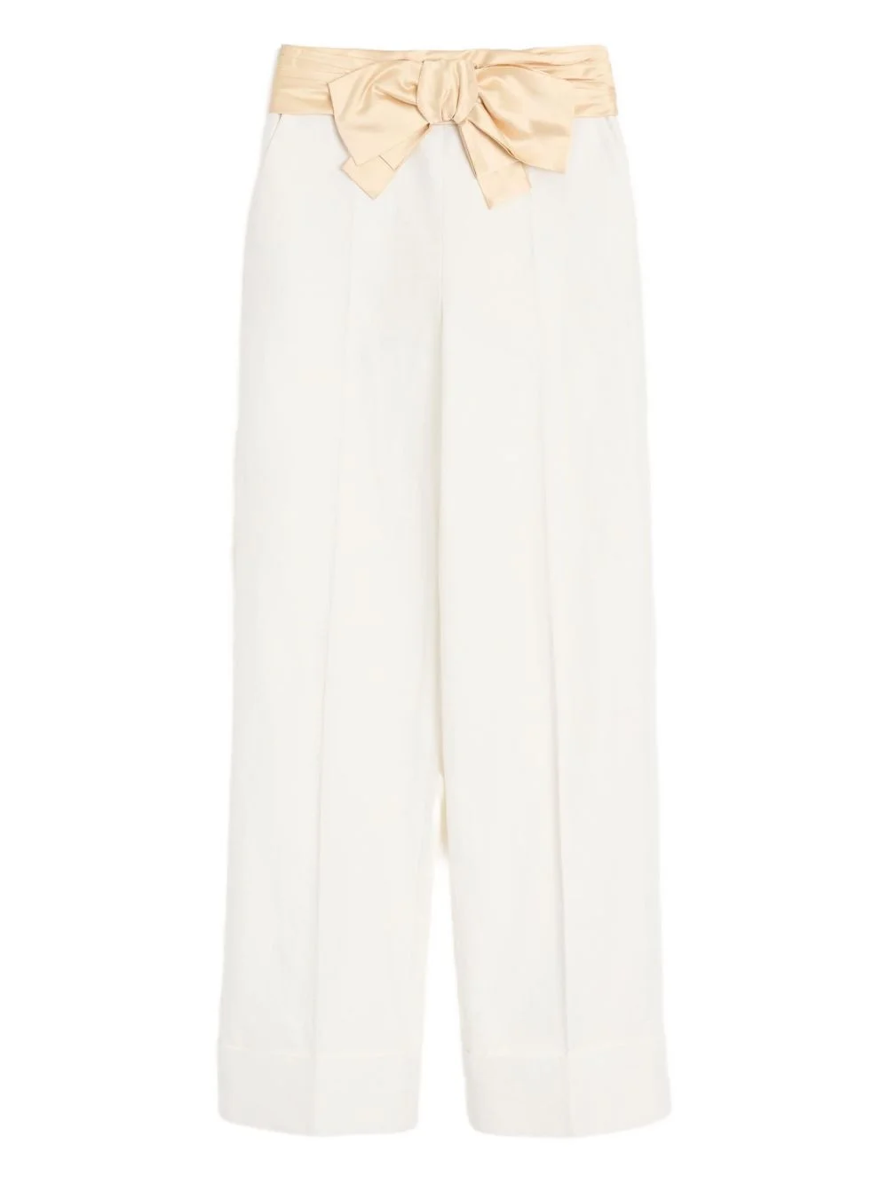 bow-detail trousers Highlights - White - Slip pockets to the sides - Two rear welt pockets - Crease effect Made in Italy Composition Cotton 79%, Linen/Flax 21% Washing instructions Read Manufacturer Guidelines