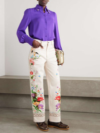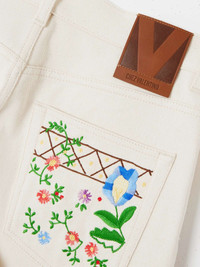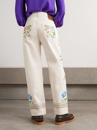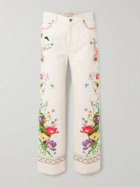 EDITORS'NOTES Valentino Garavani's jeans are embroidered with an array of colorful flowers that look as though they've been plucked from a lush garden. Made from ecru denim, they have a high rise and classic straight legs. SIZE & FIT Model measurements: - Fits true to size, take your normal size - High-rise, cut for a straight-leg fit - Mid-weight, non-stretchy denim - Size 25 jeans have an inside leg of 29"/ 74cm - Model is 177cm/ 5'10" and is wearing a size 25 - Bust: 80cm/ 31.5" - Waist: 60cm/ 23.5" - Hip: 89cm/ 35 DETAILS & CARE - Ecru denim - Button and concealed zip fastening at front - 100% cotton - Dry clean