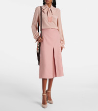 This high-rise wide-leg skort from Valentino offers a clean, tailored silhouette with a modern twist. Designed to blend ease and elegance, this style pairs effortlessly with both structured tops and soft, fluid layers. Product Details - Material: 86% viscose, 14% linen - Care instructions: dry clean - Made in Italy - Designer color name: Oriental Pink - Item color: pink - Item number: P01059893 Size & Fit - True to size - Non-stretchy fabric - Wide-leg - High-waisted - The model seen in the picture is 178cm-5'10" and wearing a size IT 40