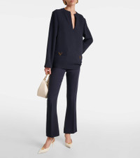 Product Details - Material: 100% silk - Care instructions: dry clean - Made in Italy - Designer color name: Navy - Lining: 91% viscose, 9% elastane - Closure: zipper, hook fastening - Pockets: side slit pockets, back pockets - Item number: P00943757 Size & Fit - True to size - Non-stretchy fabric - Slim-leg with a flared hem - High-waisted - The model seen in the picture is 178cm-5'10" and wearing a size IT 40