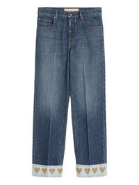 high-waisted boyfriend jeans Highlights - Blue - Front button and zip fastening - Belt loops - Heart motif - Classic five pockets - Logo patch to the rear Made in Italy Composition Cotton 100%