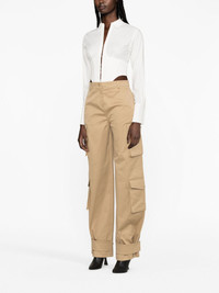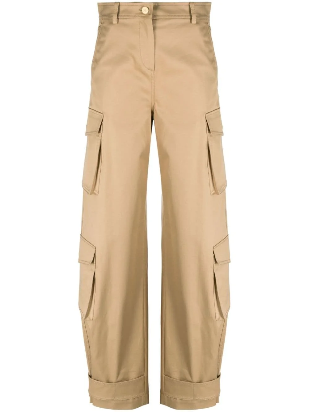 high-waisted cargo trousers Sitting high on the waist, these cargo trousers by Valentino Garavani ensure comfort and style. While the wide legs set a relaxed mood to the design, the adjustable ankle straps give the wearer the possibility to alter the silhouette. Highlights - Beige - Stretch-cotton - High waist - Concealed fly and button fastening - Belt loops - Two side slit pockets - Two rear patch pockets - Multiple cargo pockets - Wide leg - Belted cuffs Made in Italy Composition Outer: Cotton 98%, Spandex/Elastane 2% Lining: Cupro 100% SIZE & FIT Model measurements Height 5 ft 11 in(1.8 m) Bust/Chest 34.25 in(87 cm) Hips 35.82 in(91 cm) Waist 24.8 in(63 cm) FittingInformation Designed with a wide-leg cut, these trousers allow for a close fit at the waist and offer a loose and roomy fit over the leg Made from a midweight stretch fabric, this piece offers elasticity and flexibility when worn This piece fits true to size – take your usual size