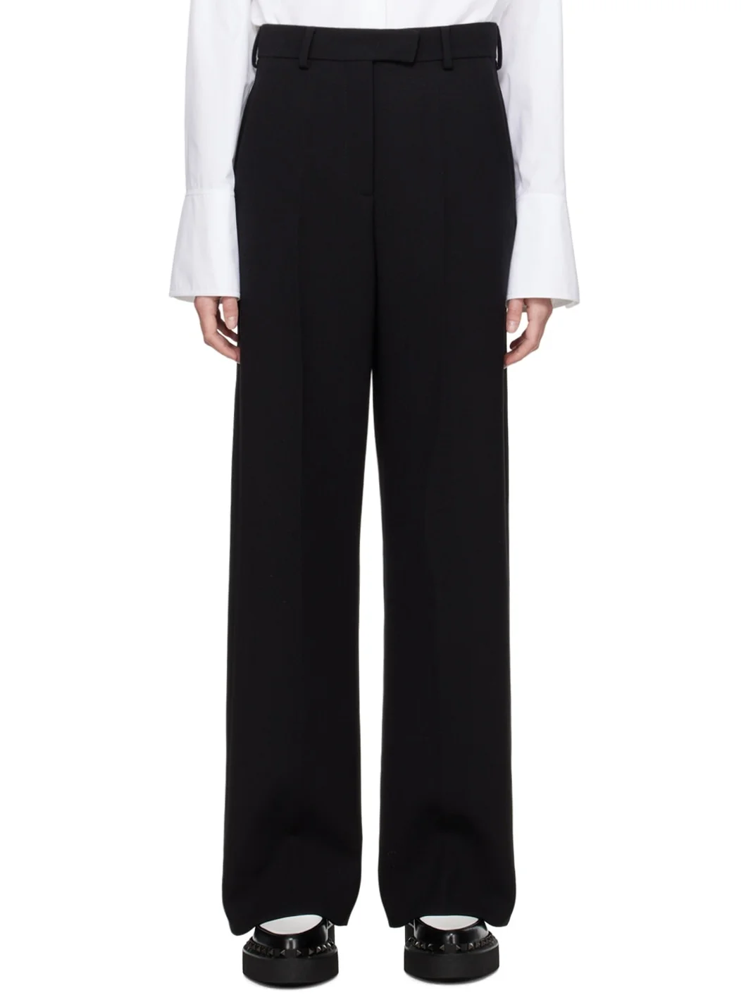 Virgin wool-blend crepe trousers. · Belt loops · Four-pocket styling · Zip-fly · Creased legs · Unfinished hem Supplier color: Nero