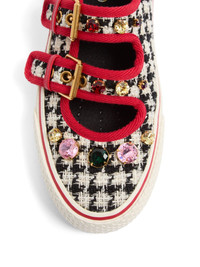 houndstooth shoes Highlights - White/black - Cotton - Houndstooth pattern - Side buckle fastening - Contrasting trim - Crystal embellishment - Round toe - Branded leather insole - Flatform sole Imported Composition Outer: Cotton 100%, Calf Leather 100%, Polyester 100%, Metal 100%, glass 100% Sole: Rubber 100% Lining: Goat Skin 100%