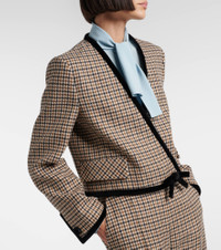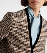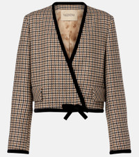 Turn to Valentino for endlessly elegant separates you'll wear again and again, like this jacket. The design is made in Italy from virgin wool, featuring a timeless houndstooth pattern and contrasting trims. Product Details - Material: 100% virgin wool - Care instructions: dry clean - Made in Italy - Color: multicoloured - Designer color name: Beige/Nero/V. Militare/Ocra - Item color: beige, black - Material II: 100% cotton - Lining: 100% viscose - Closure: snap-buttoned front - Pockets: flap pockets - Item number: P01107842 Size & Fit - True to size - Straight fit - Non-stretchy fabric - Falls to the hip - The model seen in the picture is 178cm-5'10" and wearing a size IT 40