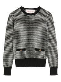 houndstooth-pattern sweater Highlights - Valentino ready to wear - Black - Two front patch pockets - Ribbed cuffs and hem - Contrasting trim Made in Italy Composition Virgin Wool 100%