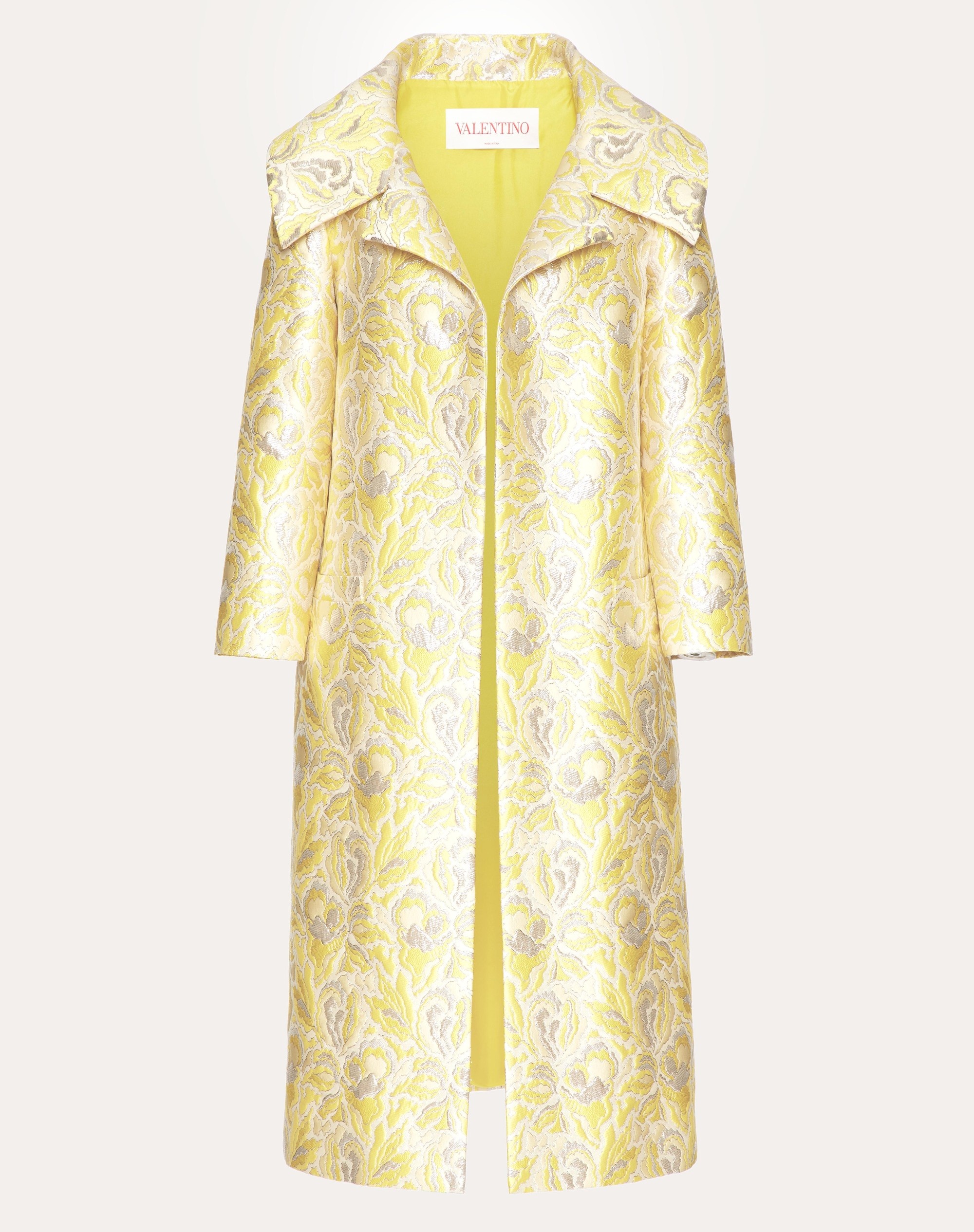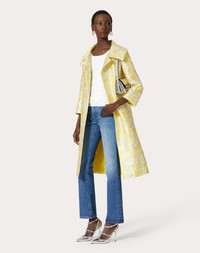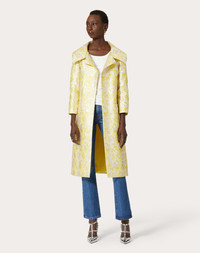 Valentino iris Brocade coat - Oversized lapels - Iris Brocade (79% Polyester, 12% Silk, 7% Metallic Polyester, 2% Polyamide) - Habotai lining: (100% Silk) - Length: 110 cm / 43.3 in. from the shoulders in an Italian size 40 - Sleeve length: 73 cm / 28.7 in. from the centre back in Italian size 40 - The model is 176 cm / 5'9" tall and wears an Italian size 40 - Made in Italy The look of the model is completed by a Valentino Garavani Letter Bag Bag and Valentino Garavani Rockstud Shoes. Product code: 3B3CA2L585G_MNX