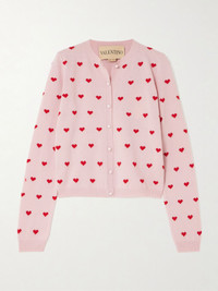 You'll believe in love at first sight the moment you slip into Valentino Garavani's cardigan. It's made from the softest virgin wool and intarsia-knitted with red hearts. The neat profile means it works just as well with skirts as jeans. Size & Fit - Fits true to size, take your normal size - Designed for a slightly loose fit - Lightweight knit - Model is 175cm/ 5'9" and is wearing a size Small Model measurements: - Bust: 81cm/ 32" - Waist: 62cm/ 24.5" - Hip: 89cm/ 35" Details & Care - Pink and red wool - Button fastenings through front - 100% virgin wool - Dry clean - Designer color: Grey Rose/ Paris