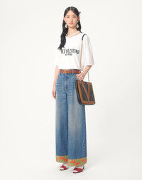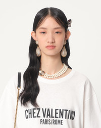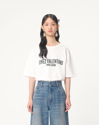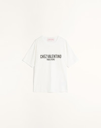 Jersey Cotton T-Shirt - Chez Valentino print - Jersey Cotton (100% Cotton) - Length: 71 cm / 27.5 in. from the shoulders in an Italian size S - Sleeve length: 49 cm / 19.6 in. from the center back in an Italian size S - The model is 176 cm / 5'9" tall and wears an Italian size S - Made in Italy The look of the model is completed by a Valentino Garavani Nellcote Bag and Valentino Garavani Ladycrush Shoes. Product code: 6B3MG24Q95W_A03