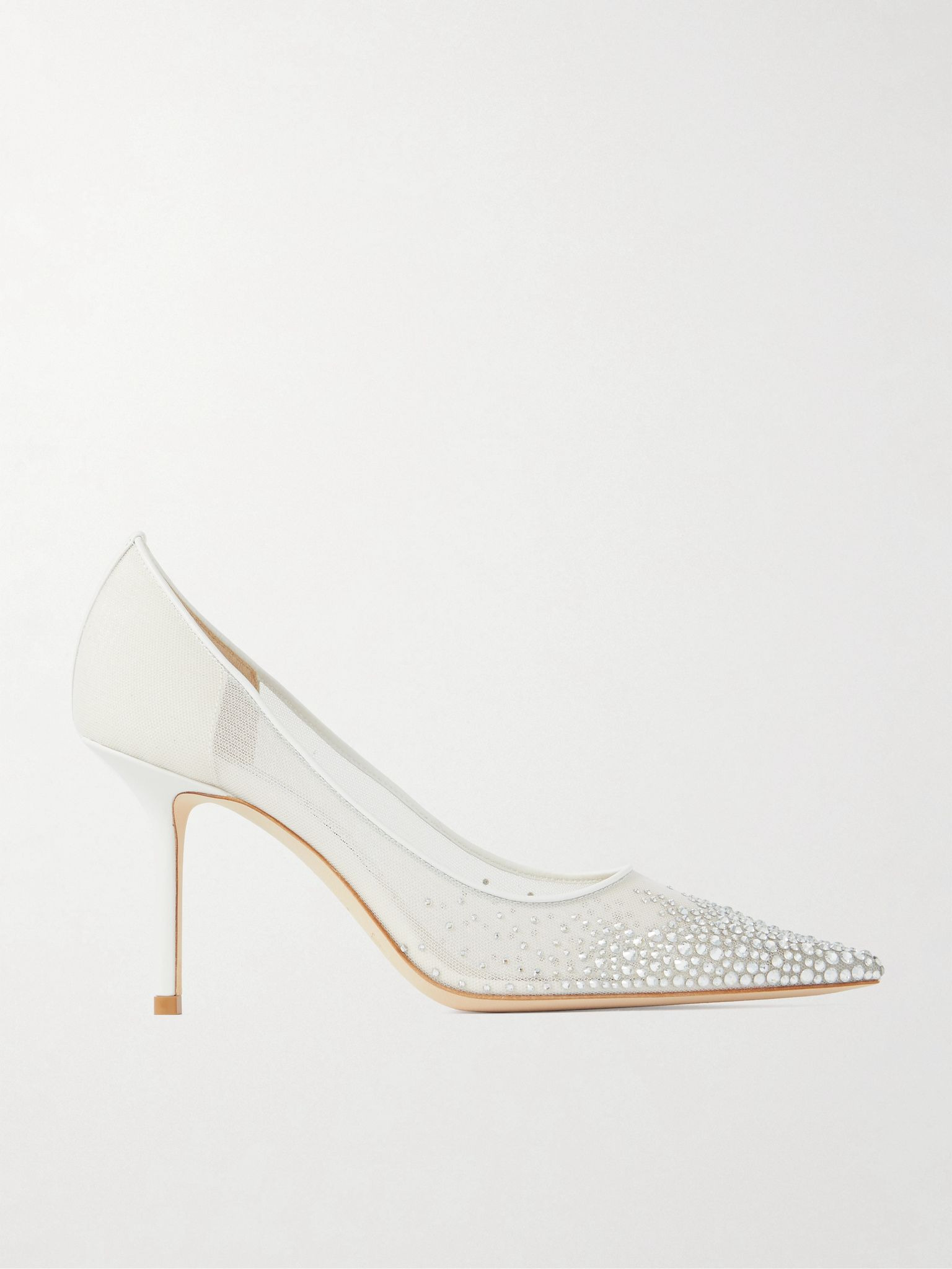 Jimmy Choo's pumps are aptly called 'Love' and destined to be worn on your wedding day. Made from structured mesh, they're piped with white leather and set on elegant 85mm stiletto heels. The pointed toes are scattered with crystals in a degrade effect that'll sparkle prettily as you walk down the aisle. Size & Fit - Fits true to size, take your normal size - Italian sizing Details & Care - Heel measures approximately 85mm/ 3.5 inches - White mesh and leather (Lamb) - Slip on