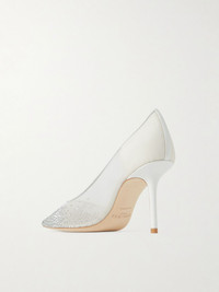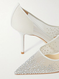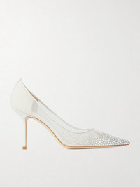 Love 85 leather-trimmed crystal-embellished mesh pumps White