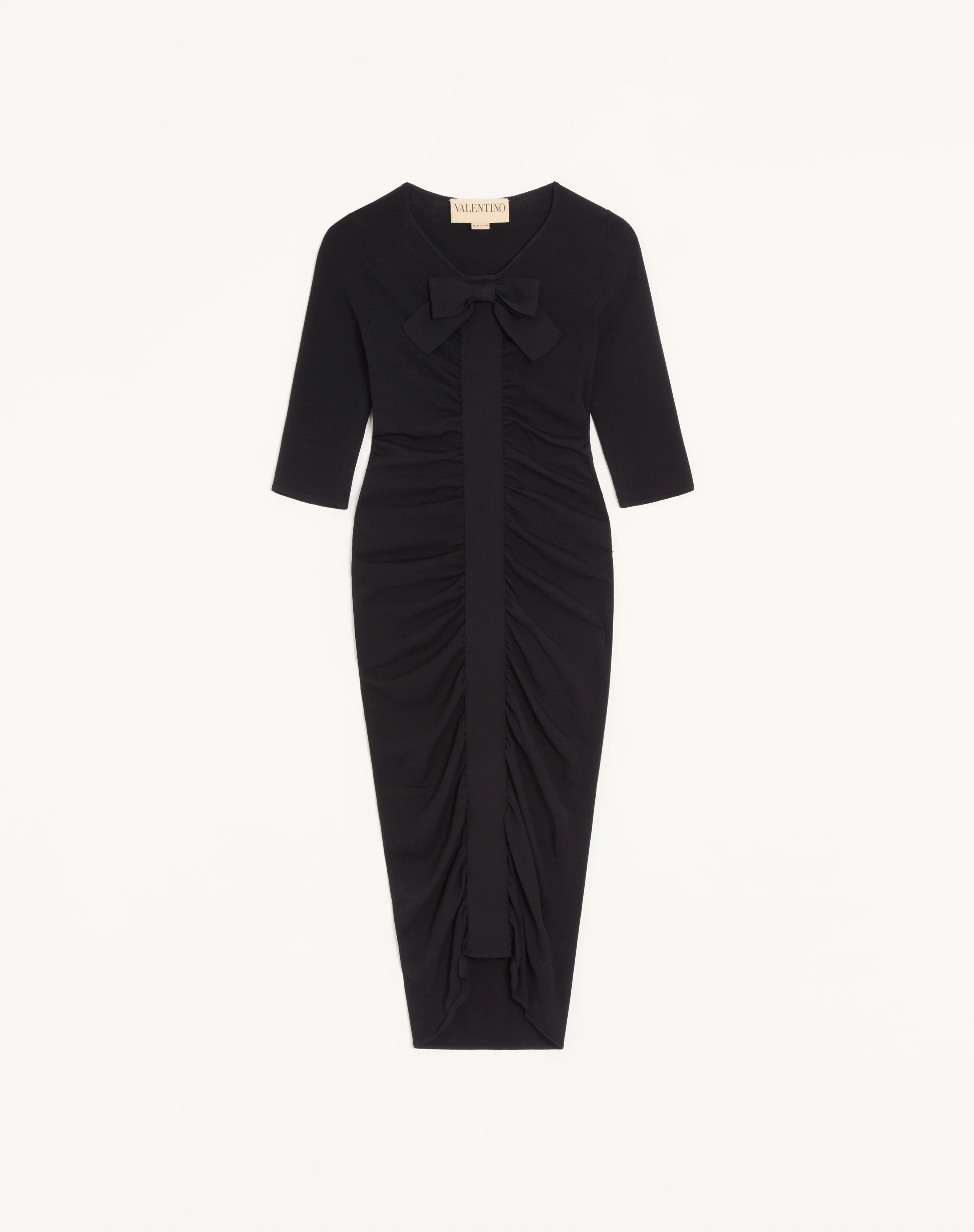 Knit Dress with Front Ruching and bow - Viscose Stretch (83% Viscose, 17% Polyester) - Length: 105 cm / 41.3 in. from the shoulders in an Italian size 40 -The model is 176 cm / 5'9" tall and wears an Italian size S - Made in Italy Product code: 8B0KD15LA8N_0NO