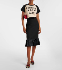 Valentino Garavani stands as a symbol of craftsmanship, creativity, and individuality. Crafted in Italy, these leather mules showcase charming ribbon accents, 60mm heels, an almond-shaped toe, a dog print motif, and the signature VLogo detail. Product Details - Upper: leather, cotton - Lining: leather - Sole: leather insole, leather and rubber sole - Toe shape: round toe - Made in Italy - Includes: dust bag, shoe box - Designer color name: Nero-Ivory/Classic Red - Item color: black - Item number: P01061977 Size & Fit - True to size - For narrow feet, we recommend trying a half size smaller - European sizes - 6cm-2.5" heel (size EU 38)