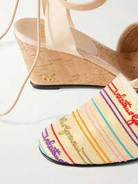 La Cruisette 75 Tasseled Embroidered Canvas Wedge Sandals