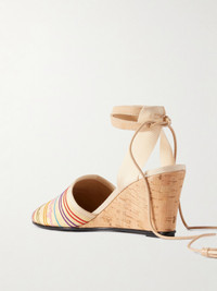 Valentino Garavani's 'La Cruisette' sandals are embroidered with bold stripes featuring the brand's cursive logo. They're made from canvas and have grosgrain trims and suede and leather ankle straps tipped with tassels - adjust yours for the perfect fit. The cork wedge heels offer 75mm of lift.