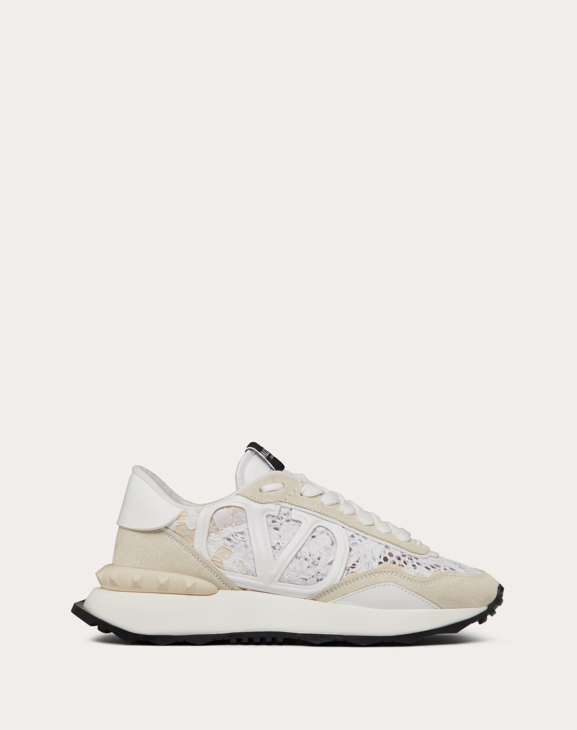 Valentino Garavani Lacerunner lace and mesh sneaker with leather details. - Leather VLogo Signature detail - Midsole with raised Valentino Garavani logo and rubber stud detailing at the back - Rubber tread with maxi stud motif - Made in Italy Product code: WS0DY9ZUX_0BQ