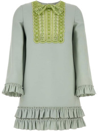 bow-detail mini dress Highlights - Valentino ready to wear - Sage green - Concealed rear zip fastening - Lace panelling - Ruffled trim Made in Italy Composition Outer: Virgin Wool 65%, Silk 35% Lining: Silk 100%