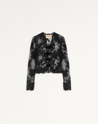 Lace Shirt with Velvet Bows - Front hook-and-eye closure - Lace (68% Cotton, 32% Polyamide) - Tulle Lining (100% Polyamide) - Length: 50 cm / 19.7 in. from the shoulders in an Italian size 40 - The model is 176 cm / 5'9" tall and wears an Italian size 40 - Made in Italy The look of the model is completed by Valentino Garavani Panthea Shoes. Product code: 7B0AB8129S9_0NO