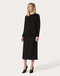 Lace Midi Skirt - Elastic waistband - Lace (56% Polyamide, 44% Viscose) - Cady Shorts - Length: 87 cm / 34.3 in. from the waist in an Italian size 40 - The model is 176 cm / 5'9" tall and wears an Italian size 40 - Made in Italy The look of the model is completed by Valentino Garavani Shoes. Product code: 5B0RAC318Y3_0NO