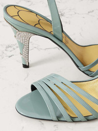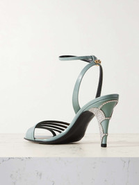 EDITORS'NOTES This playful version of Valentino Garavani's ‘Ladycrush’ sandals is made from strips of glossed-leather in a soft mint shade. Crafted in Italy, they have simple rounded toes and crystal-embellished heels that sparkle with every step. SIZE & FIT - Fits true to size, take your normal size - Italian sizing DETAILS & CARE - Heel measures approximately 85mm/ 3.5 inches - Mint glossed-leather (Calf) - Buckle-fastening ankle strap