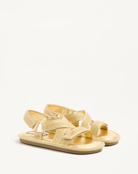 Valentino Garavani Lake Powell sandal made with crochet embroidery in cotton and metallic thread with laminated nappa leather details - VLogo Signature detail finished to match the trims - Velcro adjustable heel and front strap - Padded laminated nappa leather insole for additional comfort - Heel height: 5 mm/0.2 in. - Made in Italy Product code: 6W0S0LZ2EEU_AFL