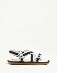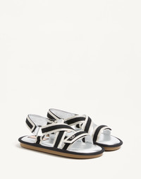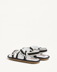 Valentino Garavani Lake Powell sandal made with crochet embroidery in cotton and metallic thread with laminated nappa leather details - VLogo Signature detail finished to match the trims - Velcro adjustable heel and front strap - Padded laminated nappa leather insole for additional comfort - Heel height: 5 mm/0.2 in. - Made in Italy Product code: 6W0S0LZ2EEU_NUD