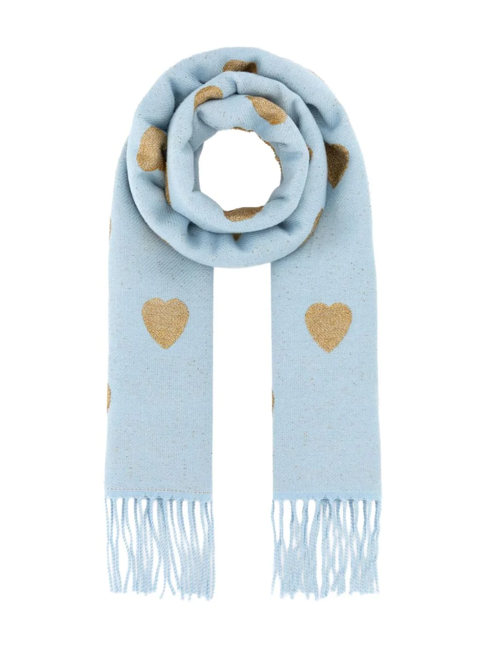 heart-pattern fringed scarf Highlights - Light blue - Heart motif - Fringed edge Made in Italy Composition Virgin Wool 70%, Viscose 19%, Other fibres 6%, Cashmere 5% Washing instructions Read Manufacturer Guidelines