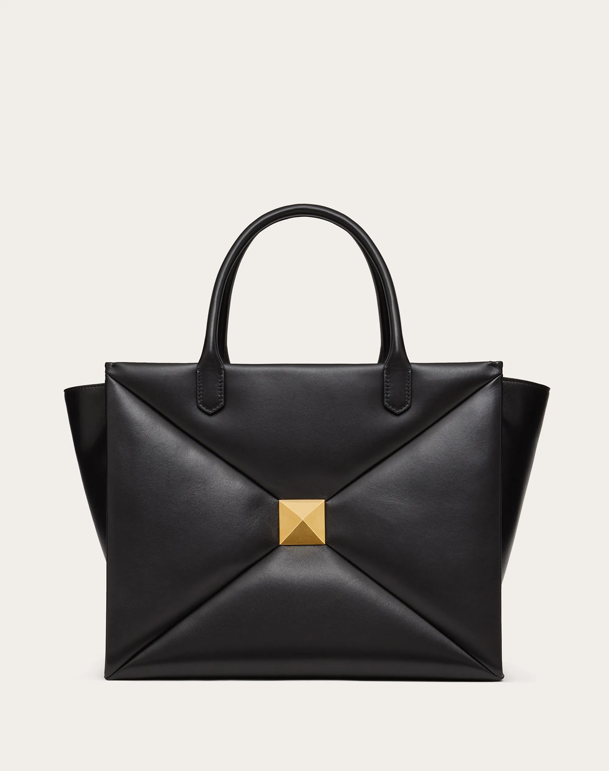 Large Valentino Garavani ONE STUD bag in Lambskin Nappa with maxi stud detail at the front. - Antique Brass finish on stud and metal parts - Zipper closure Protective feet - Nappa Lining. Interior: one zipper pocket and two flat pockets - Dimensions: W32xH29xD18 cm / W12.6xH11.4xD7.1 in. - Weight: 1.2 Kg / 2.7 lbs - Made in Italy Product Code: 1W2B0K57HHX0NO