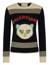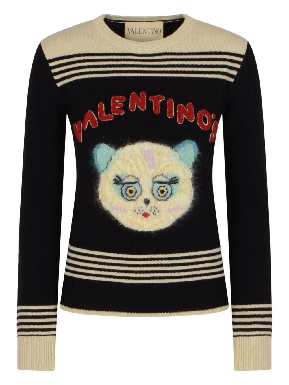 cat-embroidered striped sweater Highlights - Black - Cat embroidery - Striped detail - Crew neck - Long sleeves Made in Italy Composition Virgin Wool 100% Washing instructions Read Manufacturer Guidelines