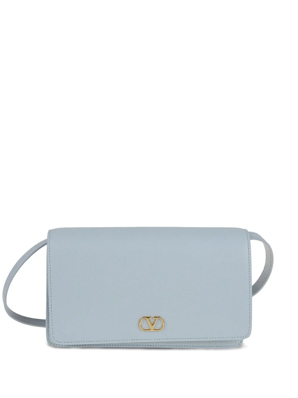 leather tote bag Highlights - Blue - Foldover top - Vlogo signature - Gold-tone logo plaque - Single shoulder strap Made in Italy Composition Outer: Calf Leather 100%