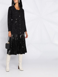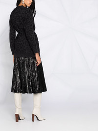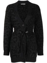 leopard pattern belted V-neck cardigan Like a leopard can't change its spots, you can't change your obsession with Valentino Garavani. This leopard pattern belted V-neck cardigan makes it pretty clear why. Take it for a walk on the wild side. Highlights - Valentino ready to wear - Dark melange grey/black - Mohair-wool blend/leather - All-over leopard pattern - Knitted construction - Belted waist - Front button fastening - V-neck - Long sleeves - Two side patch pockets - Ribbed hem Made in Italy Composition Lambskin 100%, Mohair 63%, Polyamide 31%, Wool 6% SIZE & FIT Model measurements Height 5 ft 12 in(1.82 m) Bust/Chest 33.07 in(84 cm) Hips 35.03 in(89 cm) Waist 25.19 in(64 cm) Measurement SLEEVE LENGTH 22.83 in(58 cm) LENGTH 31.1 in(79 cm) BUST 44.09 in(112 cm)