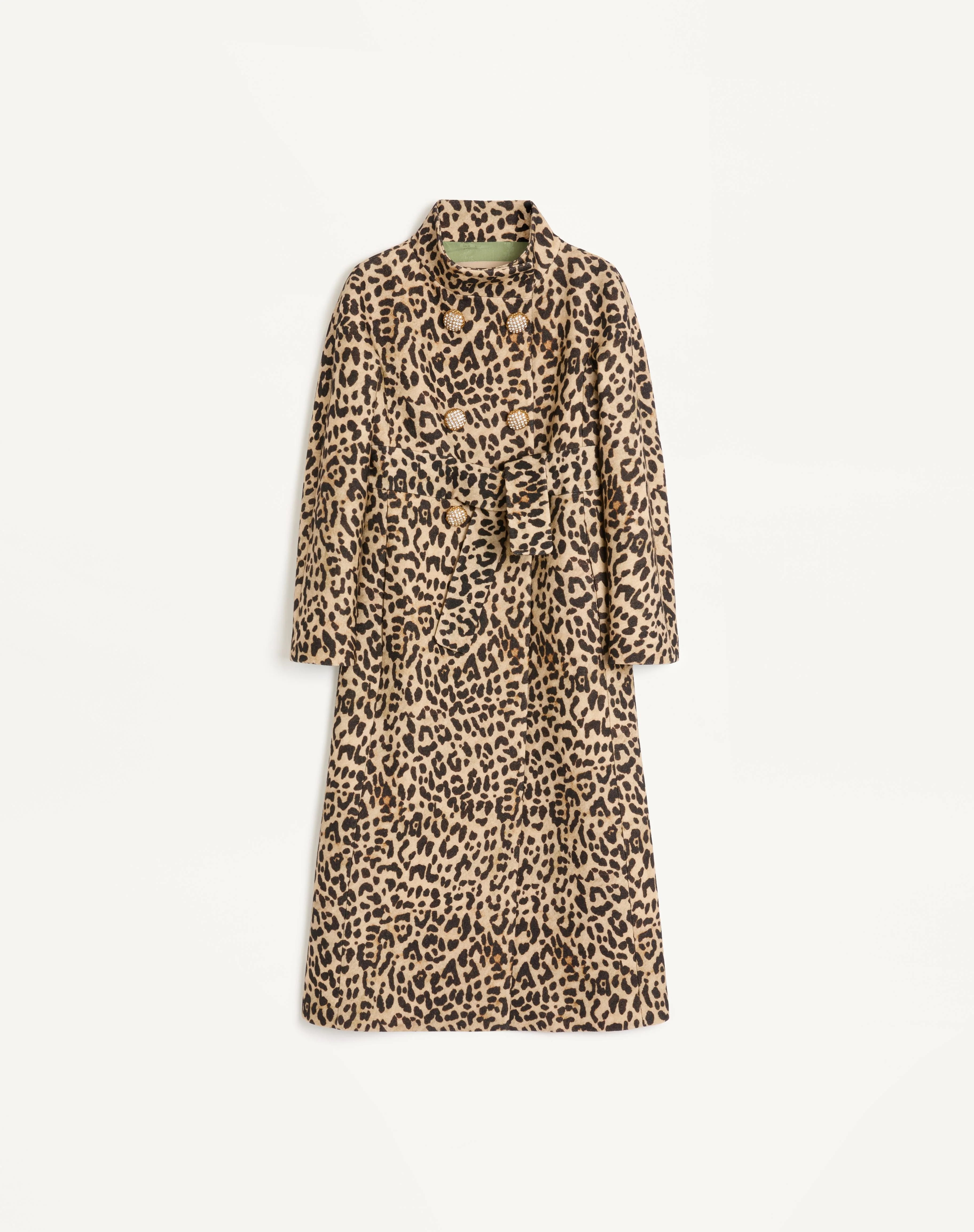 Cloth Coat in Animalier print - Double-breasted with integrated belt - Front closure with jewel buttons - Fauve Eclat Animalier Print Cloth (100% Wool) - Lining with Flowers, Stripes and VLogo (74% Acetate, 26% Silk) - Length: 116 cm / 45.7 in. from the shoulders in an Italian size 40 IT - The model is 176 cm / 5'9" tall and wears an Italian size 40 - Made in Italy The look of the model is completed by a Valentino Garavani Vain Bag and Valentino Garavani Adamantine Shoes. Product code: 7B3CA7Y09G7_AN2