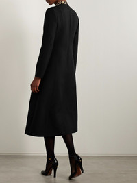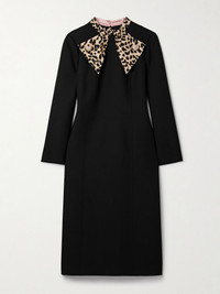 Valentino Garavani's dress has a leopard-print neck tie that fastens into place with crystal-embellished, heart-shaped brooches at each end. It's been tailored in Italy from a wool and silk-blend and is fully lined for a smooth fit. Size & Fit - Fits true to size, take your normal size - Designed to be fitted at the bust and waist, slightly loose at the hip - Mid-weight, non-stretchy fabric - Model is 175cm/ 5'9" and is wearing an IT 40 Model measurements: - Bust: 75cm/ 29.5" - Waist: 60cm/ 23.5" - Hip: 93cm/ 36.5" Details & Care - Black and beige wool and silk-blend - Concealed hook and zip fastening at back - 65% virgin wool, 35% silk; trim: 100% acetate; lining: 100% silk - Dry clean