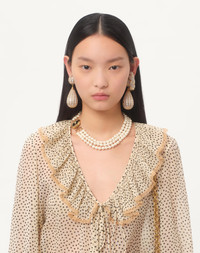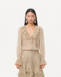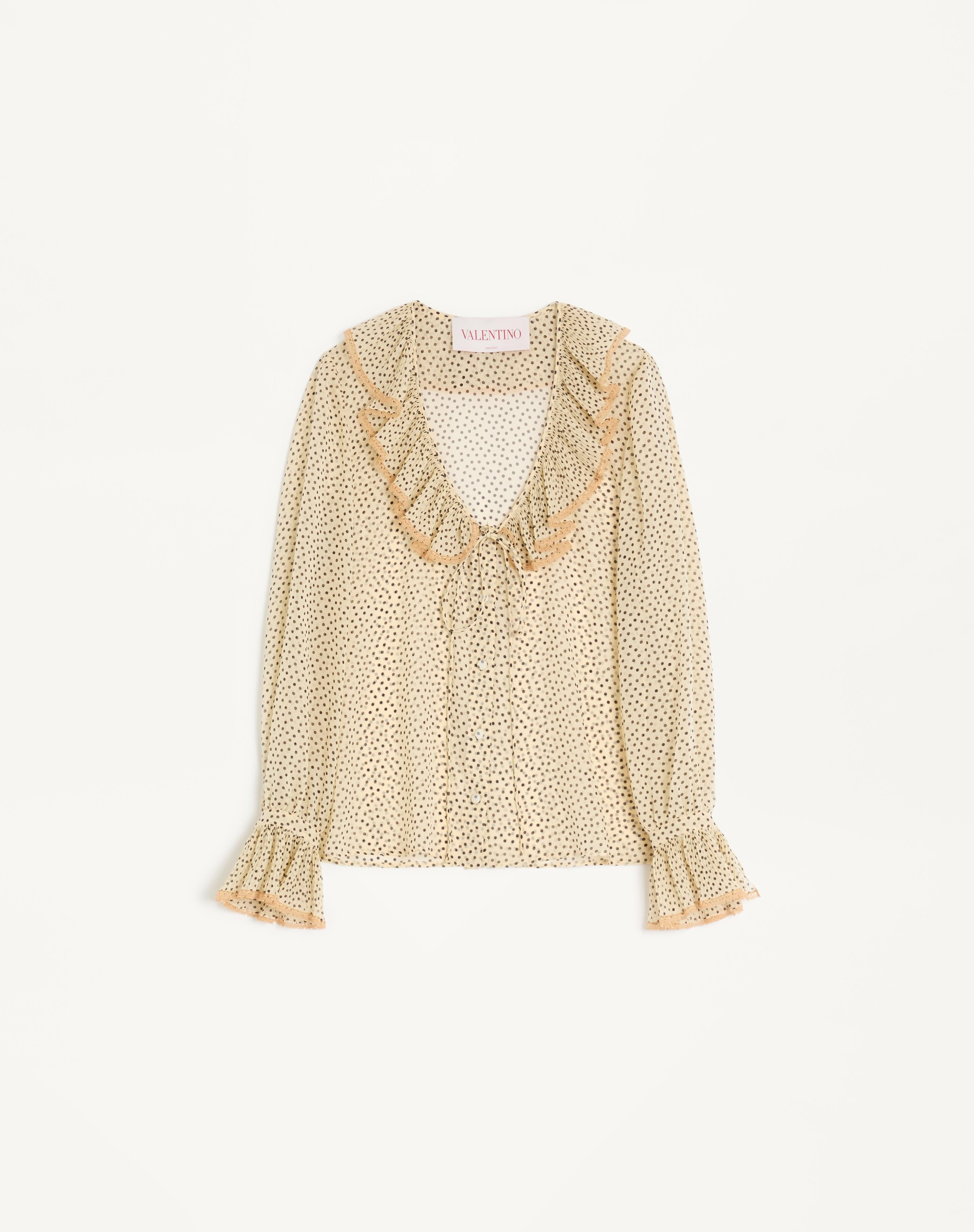Long-sleeved shirt in Light Georgette with Plusdepois print with ruffle details - Bow detail - Front button closure - Tulle trims - Light Georgette Plusdepois (100% Silk) - Length: 65 cm / 25.6 from the shoulders in an Italian size 40 - The model is 176 cm / 5'9" tall and wears an Italian size 40 - Made in Italy Product code: 6B0AB7H19B7_R8E