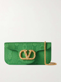 EDITORS'NOTES This version of Valentino Garavani's 'Loco' clutch is designed to stand out. It's made from emerald moire and accented with a crystal-embellished 'VLOGO'. The main compartment has enough room for a phone, lipstick and the stashable chain strap. SIZE & FIT This item’s measurements are: - Min. Strap Length: 136cm / 53.5in - Depth: 5.5cm / 2.2in - Max. Strap Length: 146cm / 57.5in - Height: 10cm / 3.9in - Width: 22cm / 8.7in DETAILS & CARE - Emerald moire - Detachable chain shoulder strap - Internal slip pocket - Unlined - Magnetic-fastening front flap