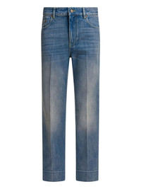 logo-patch cuffed denim jeans Highlights - Valentino ready to wear - Light blue - Logo patch - Seam detailing - Five-pocket design - Turned-up hems Made in Italy Composition Cotton 100%
