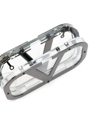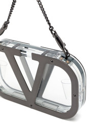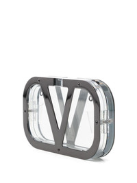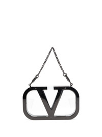 logo-plaque clear clutch Highlights - Black - Transparent design - Logo plaque - Detachable chain-link top handle - Magnetic fastening - Main compartment Made in Italy Composition Body: Metal 50% Plastic 50% SIZE & FIT Model measurements Height 5 ft 9 in(1.76 m) Bust/Chest 30.31 in(77 cm) Hips 35.03 in(89 cm) Waist 23.62 in(60 cm)
