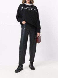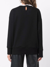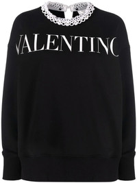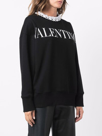 logo-print long-sleeve sweatshirt Valentino Garavani pairs streetwear-inspired style with the brand's sense of opulence in this long-sleeve sweatshirt design. Featuring the brand's logo printed across the front which ties in with current branding trends, its detachable lace collar adds a sophisticated edge to the casual wear piece. Highlights - Valentino ready to wear - Black - Cotton - Logo print to the front - Round neck - Detachable collar - Drop shoulder - Long sleeves - Straight hem - Keyhole detail to the rear Made in Italy Composition Cotton 100%, Polyester 100% SIZE & FIT Model measurements Height 5 ft 9 in(1.75 m) Bust/Chest 32.67 in(83 cm) Hips 36.22 in(92 cm) Waist 24.8 in(63 cm) FittingInformation This piece fits true to size. We recommend you get your regular size Cut for a loose fit Made with a mid-weight stretch fabric