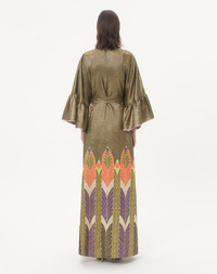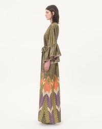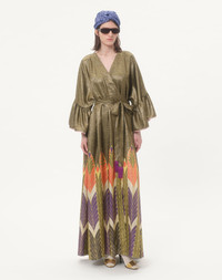 Voyage Imaginaire print Lurex long dress - Ruffle detail at the wrists - Fringed waist sash - Voyage Imaginaire Liberty Lurex (82% Silk, 18% Metallic Fibers) - Flower, Stripe and VLogo Lining (74% Acetate, 26% Silk) - Length: 116 cm / 45.7 in. from the waist in an Italian size 40 - The model is 176 cm / 5'9" tall and wears an Italian size 40 - Made in Italy Product code: 7B3VDLX09NF_B8Z