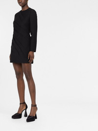 long-sleeve gathered minidress Valentino Garavani offers refined minimalism with this minidress. In a classic black hue, it boasts gathered detailing for understated embellishment. Highlights - Valentino ready to wear - Black - Virgin wool-silk blend - Gathered detailing - Round neck - Rear zip fastening - Long sleeves - Thigh-length Made in Italy Composition Outer: Virgin Wool 65%, Silk 35% Lining: Viscose 63%, Silk 37% SIZE & FIT Model measurements Height 5 ft 10 in(1.77 m) Bust/Chest 32.28 in(82 cm) Hips 35.03 in(89 cm) Waist 25.19 in(64 cm) FittingInformation This piece fits true to size. We recommend you get your regular size Cut for a slim fit Made with a mid-weight non-stretch fabric Washing instructions Dry Clean Only