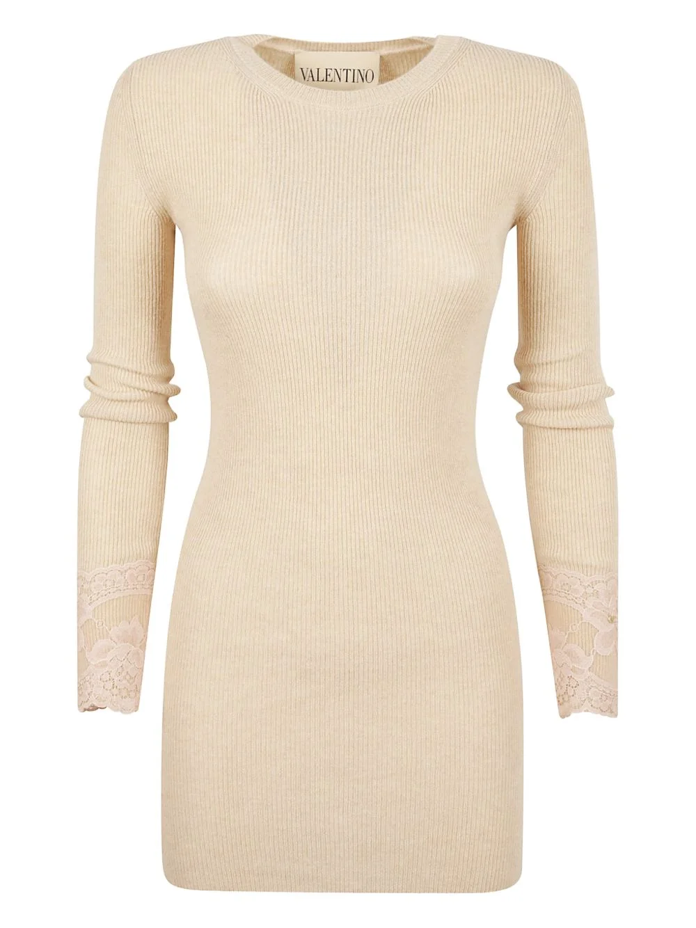 long-sleeve mini dress Highlights - Beige - Ribbed design - Lace embroidery - Long sleeves - Crew neck Made in Italy Composition Cashmere 100% Washing instructions Read Manufacturer Guidelines