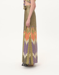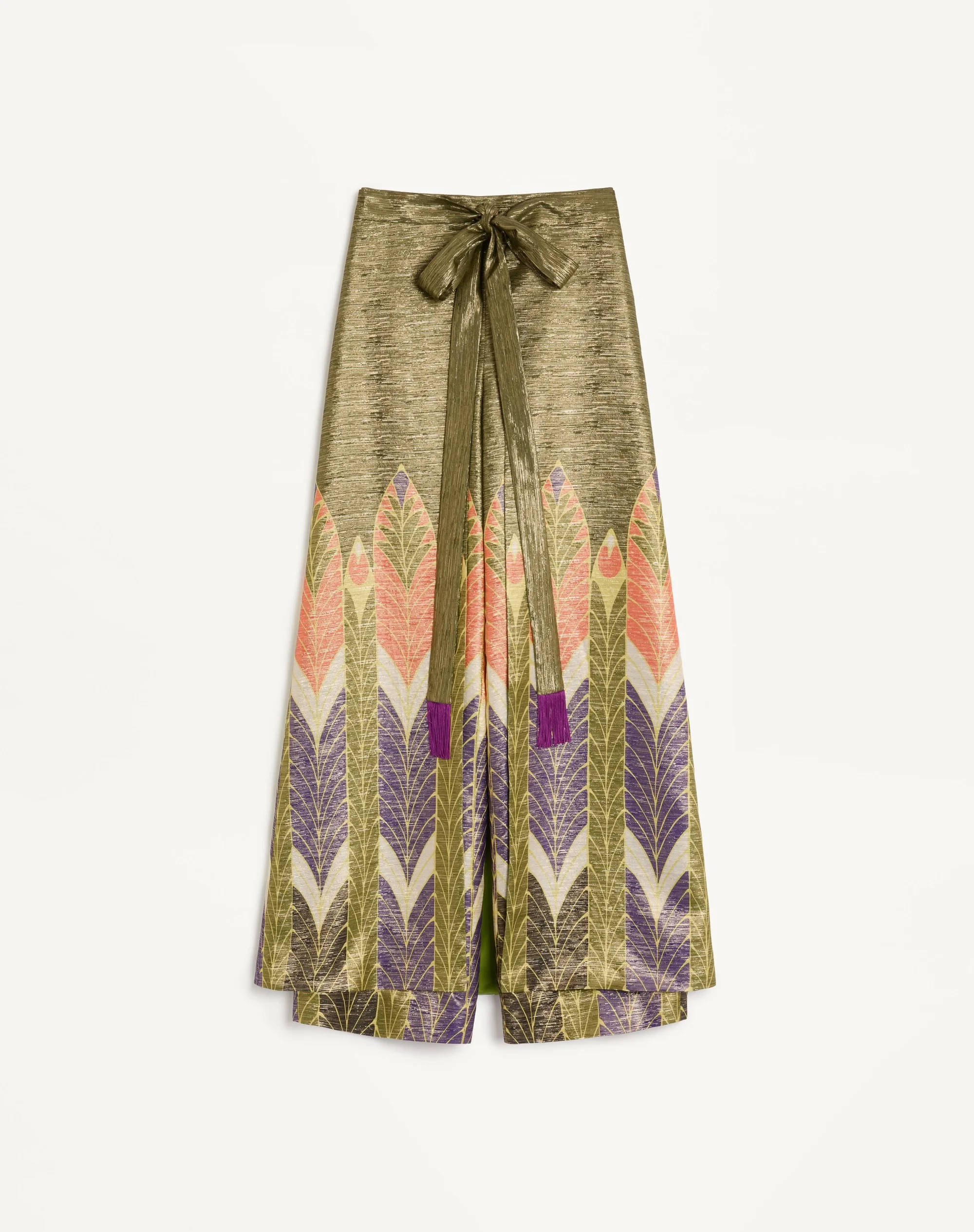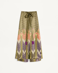 Lurex pants with Voyage Imaginaire print - Skirt-pants detail - Voyage Imaginaire Liberty Lurex (82% Silk, 18% Metallic Fiber) - Habotai lining (100% Silk) - Length: 110 cm / 43.3 in. from the waist in an Italian size 40 - Leg opening: 30 cm / 11.8 in. in an Italian size 40 - The model is 176 cm / 5'9" tall and wears an Italian size 40 - Made in Italy Product code: 7B3RB6R59NF_B8Z