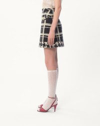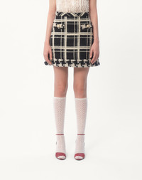 Macro Check Tweed Skirt - Contrasting houndstooth detail on pockets and hem - VLogo button detail on pockets - Side zipper closure - Macro Check Tweed (70% Virgin Wool, 25% Polyester, 5% Polyamide) - Jacquard lining with diagonal stripe pattern with flowers and VLogo ( 75% Acetate, 25% Silk ) - Length: 85 cm / 33.5 in. from the waist in an Italian size 40 - The model is 176 cm / 5'9" tall and wears an Italian size 40 - Made in Italy The look of the model is completed by a Valentino Garavani Vain Bag and Valentino Garavani Ladycrush Shoes. Product code: 6B3RACM190N_0NA