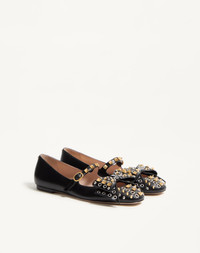 Valentino Garavani Bowow Mary Jane ballerina in kidskin with bow detail - Bow and upper with metal eyelets and studs in various sizes and finishes on a kidskin base - Adjustable strap with antique-effect brass buckle and studs - VLogo Signature detail with antique-effect brass finish - Custom insole with floral pattern - Heel height: 5 mm / 0.2 in. - Made in Italy Product code: 7W2S0MX7ETL_0NO