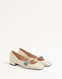 Valentino Garavani Preshoes Mary-Jane ballerina in kidskin - Strap detailed with jeweled button with crystals and VLogo Signature decoration in antique brass-effect finish - Custom insole with scallop pattern - Adjustable elasticated strap - Leather-covered block heel - Heel height: 20 mm / 0.8 in. - Made in Italy Product code: 6W2S0LL7DHS_9TK