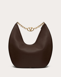 Valentino Garavani VLogo Moon maxi nappa leather hobo bag with a chain featuring a metallic VLogo Signature element. The bag can be worn crossbody or handheld thanks to the chain and removable leather shoulder strap. - Gold tone-finish chain and hardware - Removable leather strap - Zipper closure - Nappa leather lining. Interior: one slip pocket - Shoulder strap drop length: 46.5 cm / 18.3 in. - Chain drop length: 39 cm / 15.3 in. - Dimensions: W49.5xH49xD13 cm / W19.4xH19.2xD5.1 in. - Made in Italy Product code: 4W0B0N45PHV_514