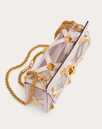 Valentino Garavani medium bag with Roman Stud chain in transparent polymer material with leather grid decorated with maxi studs. Equipped with a detachable sliding chain strap and a removable handle, this accessory can be worn as a crossbody/shoulder bag or carried as a handbag. .- Diamond pattern outlined by a leather grid - Studs and antique brass-finish hardware - Twist-lock closure - Interior: one zipper pocket and one flat pocket - Shoulder strap drop length: 55 cm / 21.7 in. - Dimensions: W25xH16xD10 cm / W9.8xH6.3xD3.9 in. - Weight: 0.63 kg / 1.4 lb - Made in Italy Product code: WB0I82SEA_76T