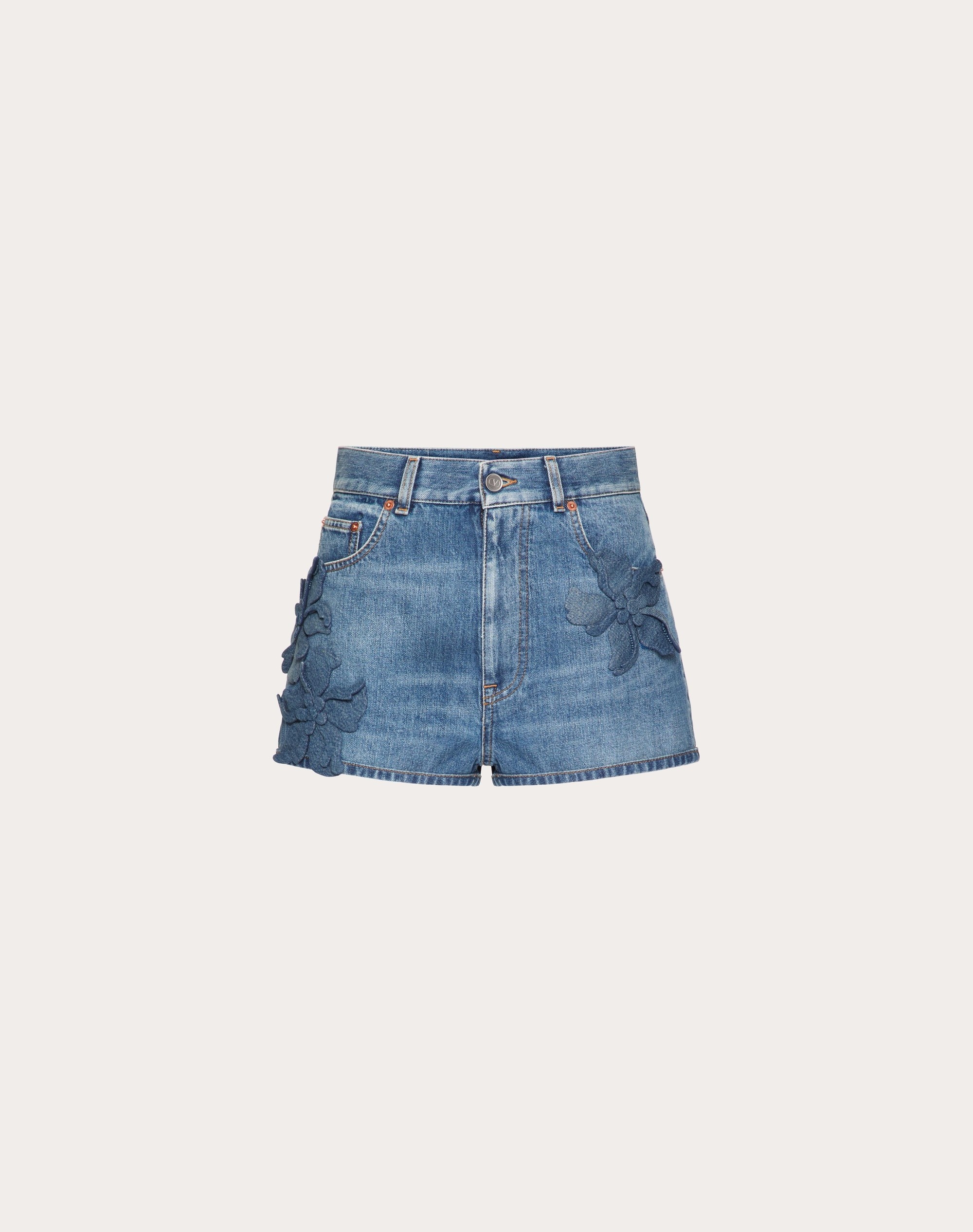 Medium Blue Denim Embroidered Shorts - Hibiscus embroidery detail - Medium Blue Denim (100% Cotton) - Unlined - Length: 27 cm / 10.6 in. from the waist in an Italian size 26 - Leg opening 30.5 cm / 12 in. in an Italian size 26 - Inseam 5.5 cm / 2.1 in. in an Italian size 26 - The model is 176 cm / 5'9" tall and wears an Italian size 26 - Made in Italy The look of the model is completed by a Valentino Garavani VLogo Soft Bag and Valentino Garavani Rockstud Shoes. Product code: 4B0DD17H8KJ_558 Medium Blue Denim Embroidered Shorts - Hibiscus embroidery detail - Medium Blue Denim (100% Cotton) - Unlined - Length: 27 cm / 10.6 in. from the waist in an Italian size 26 - Leg opening 30.5 cm / 12 in. in an Italian size 26 - Inseam 5.5 cm / 2.1 in. in an Italian size 26 - The model is 176 cm / 5'9" tall and wears an Italian size 26 - Made in Italy The look of the model is completed by a Valentino Garavani VLogo Soft Bag and Valentino Garavani Rockstud Shoes. Product code: 4B0DD17H8KJ_558