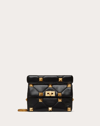 Medium Lambskin Nappa Valentino Garavani Roman Stud The Shoulder Bag with chain. Quilted construction, embellished with maxi studs. Equipped with both a detachable sliding chain strap and a detachable handle, this accessory can be worn as a crossbody/shoulder bag or used as a handbag. - Quilted nappa. Argyle pattern enhanced by tone-on-tone stitching - Antique brass-finish studs and hardware - Twist-lock closure - Nappa lining. Interior: one zipper pocket and one flat pocket - Drop length: 55 cm / 21.7 in. - Dimensions: W25xH16xD10 cm / W9.8xH6.3xD3.9 in. - Weight: 0.63 Kg / 1.4 lbs - Made in Italy Product code: 4W2B0I82BSF_0NO Medium Lambskin Nappa Valentino Garavani Roman Stud The Shoulder Bag with chain. Quilted construction, embellished with maxi studs. Equipped with both a detachable sliding chain strap and a detachable handle, this accessory can be worn as a crossbody/shoulder bag or used as a handbag. - Quilted nappa. Argyle pattern enhanced by tone-on-tone stitching - Antique brass-finish studs and hardware - Twist-lock closure - Nappa lining. Interior: one zipper pocket and one flat pocket - Drop length: 55 cm / 21.7 in. - Dimensions: W25xH16xD10 cm / W9.8xH6.3xD3.9 in. - Weight: 0.63 Kg / 1.4 lbs - Made in Italy Product code: 4W2B0I82BSF_0NO